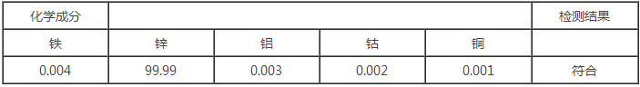 產(chǎn)品檢測(cè):從原料(鋅錠)至出成品過程中無其他成分進(jìn)入,無接觸其他金屬。使用DF—100型直讀光譜儀,等離子體電感耦合原子發(fā)射光譜等高端檢測(cè)儀器。入庫之前每個(gè)工序?qū)訉影殃P(guān),層層檢測(cè),不放過任何一個(gè)微小的細(xì)節(jié),從而使我們的產(chǎn)品性能長(zhǎng)期穩(wěn)定,確保每批純鋅丸含量99.99%以上。公司檢測(cè)中心擁有科學(xué)的質(zhì)量檢測(cè)手段,目前已有碳硫分析儀、電弧燃燒爐、元素分析儀、金相顯微硬度計(jì)等質(zhì)檢設(shè)備,可以對(duì)產(chǎn)品的成分、硬度以及使用壽命等進(jìn)行檢測(cè),確保產(chǎn)品達(dá)到國(guó)家標(biāo)準(zhǔn)或采購方的要求。
